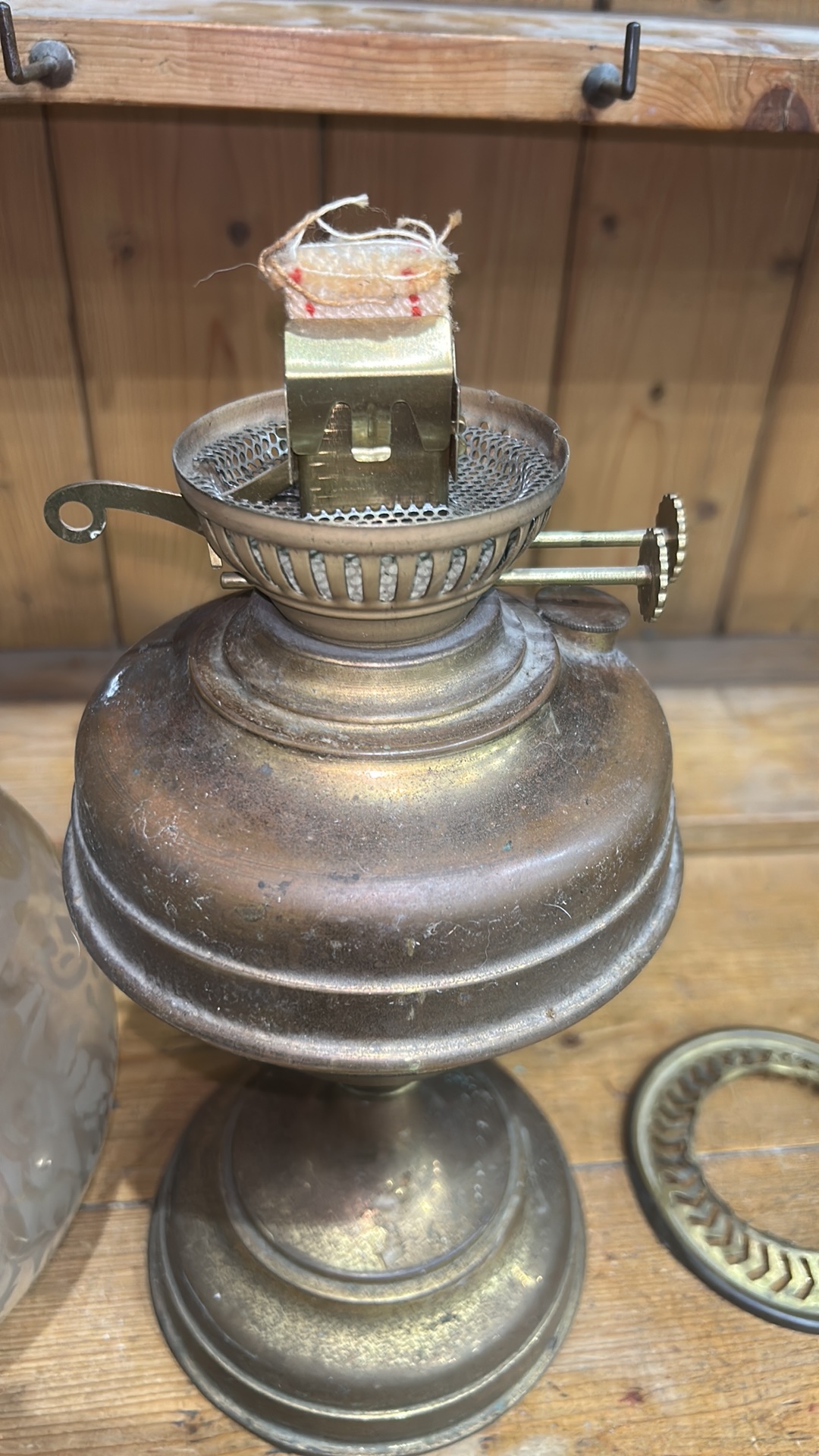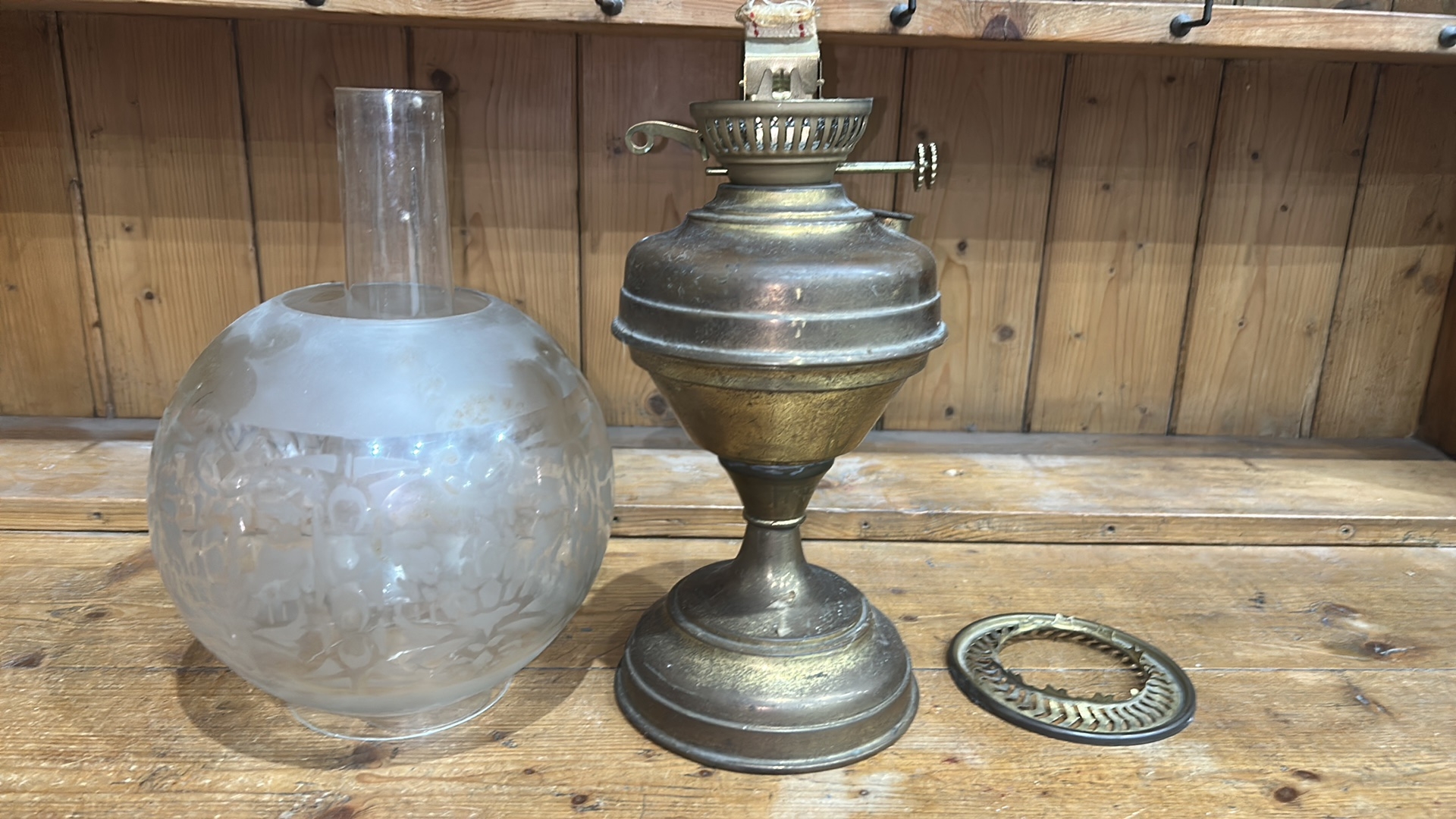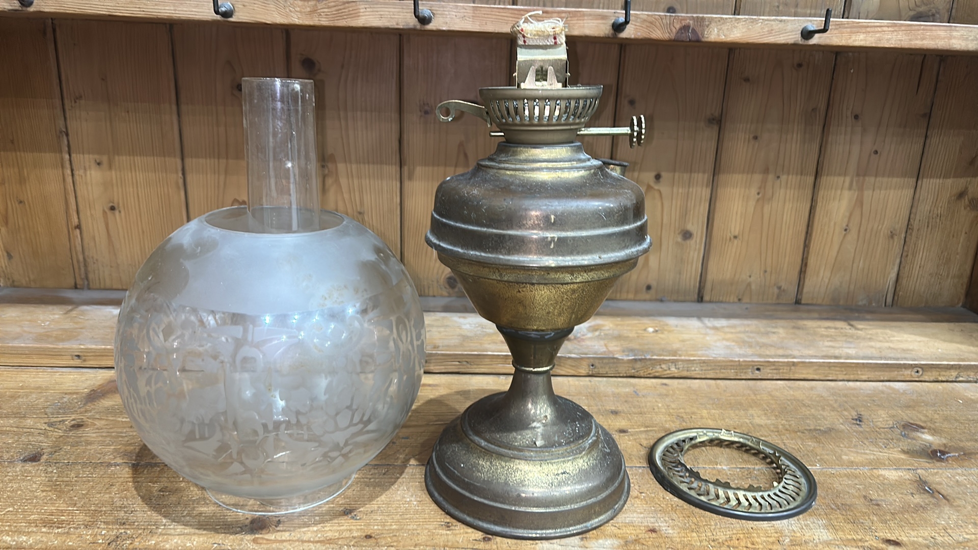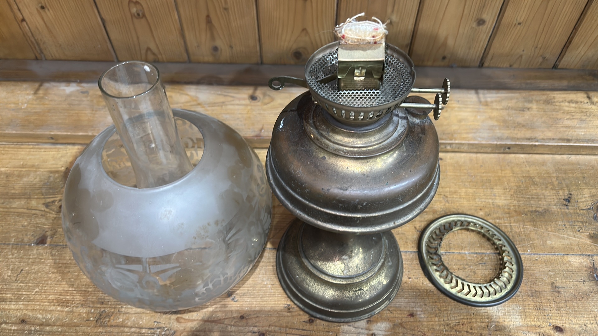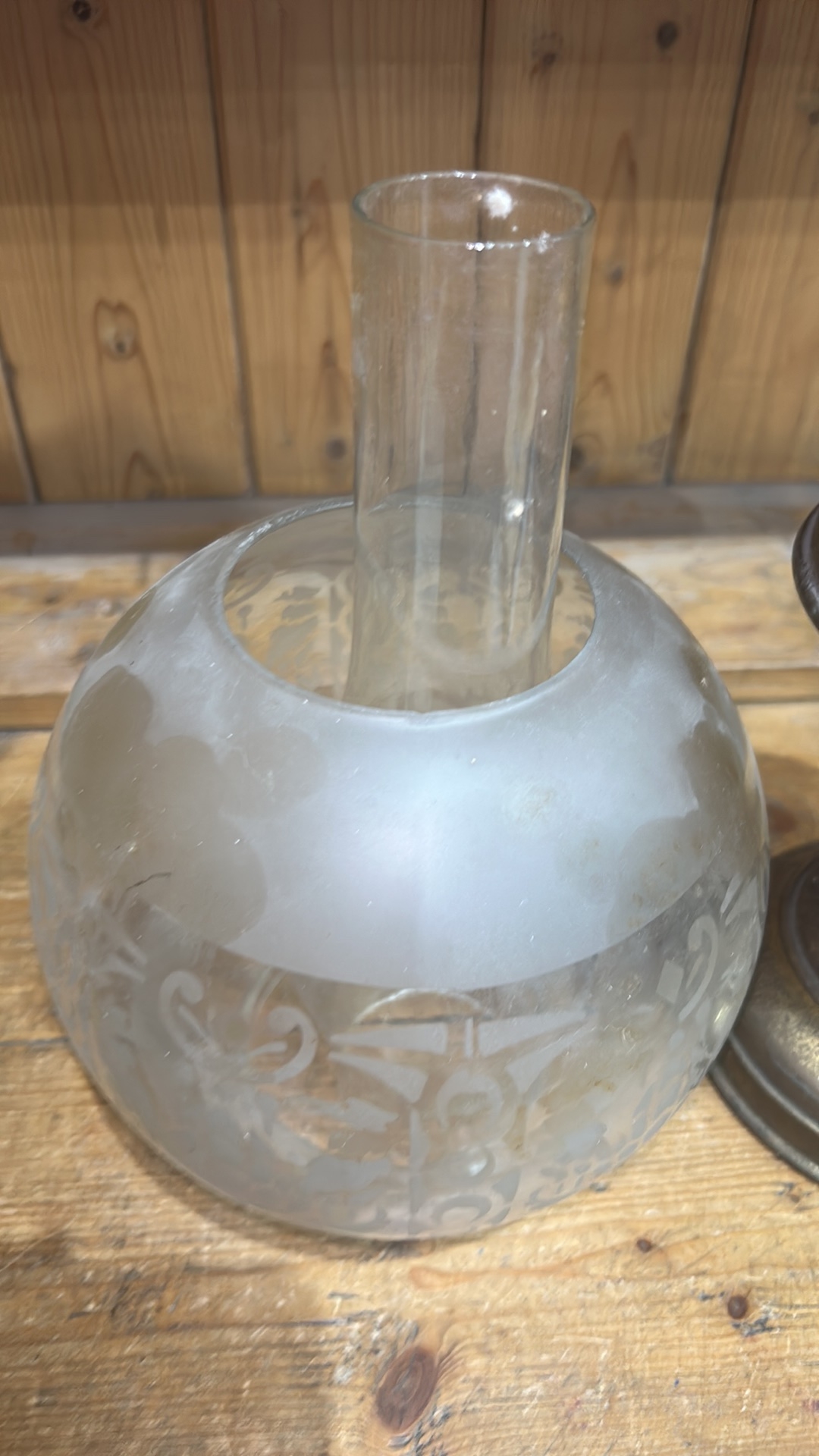 Aladdin Brass Oil Lamp with Frosted Etched Glass Shade
