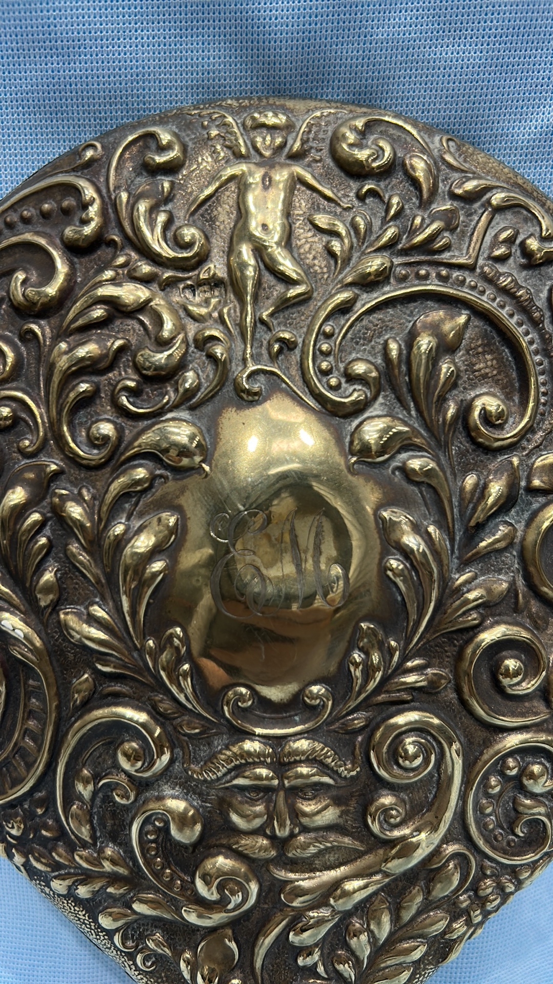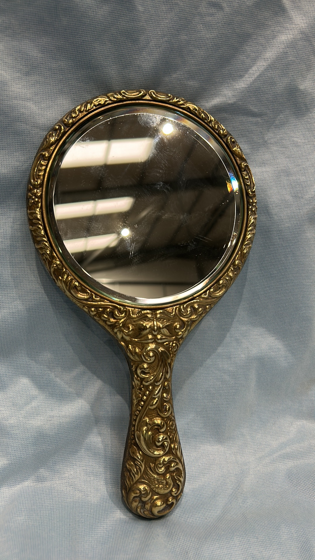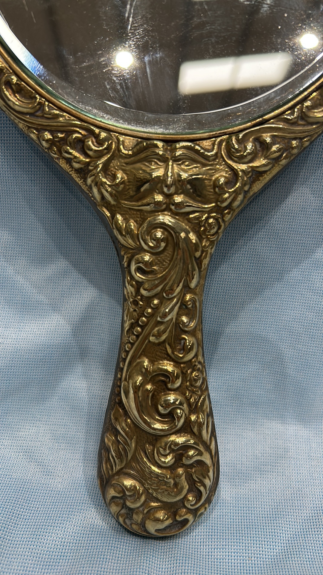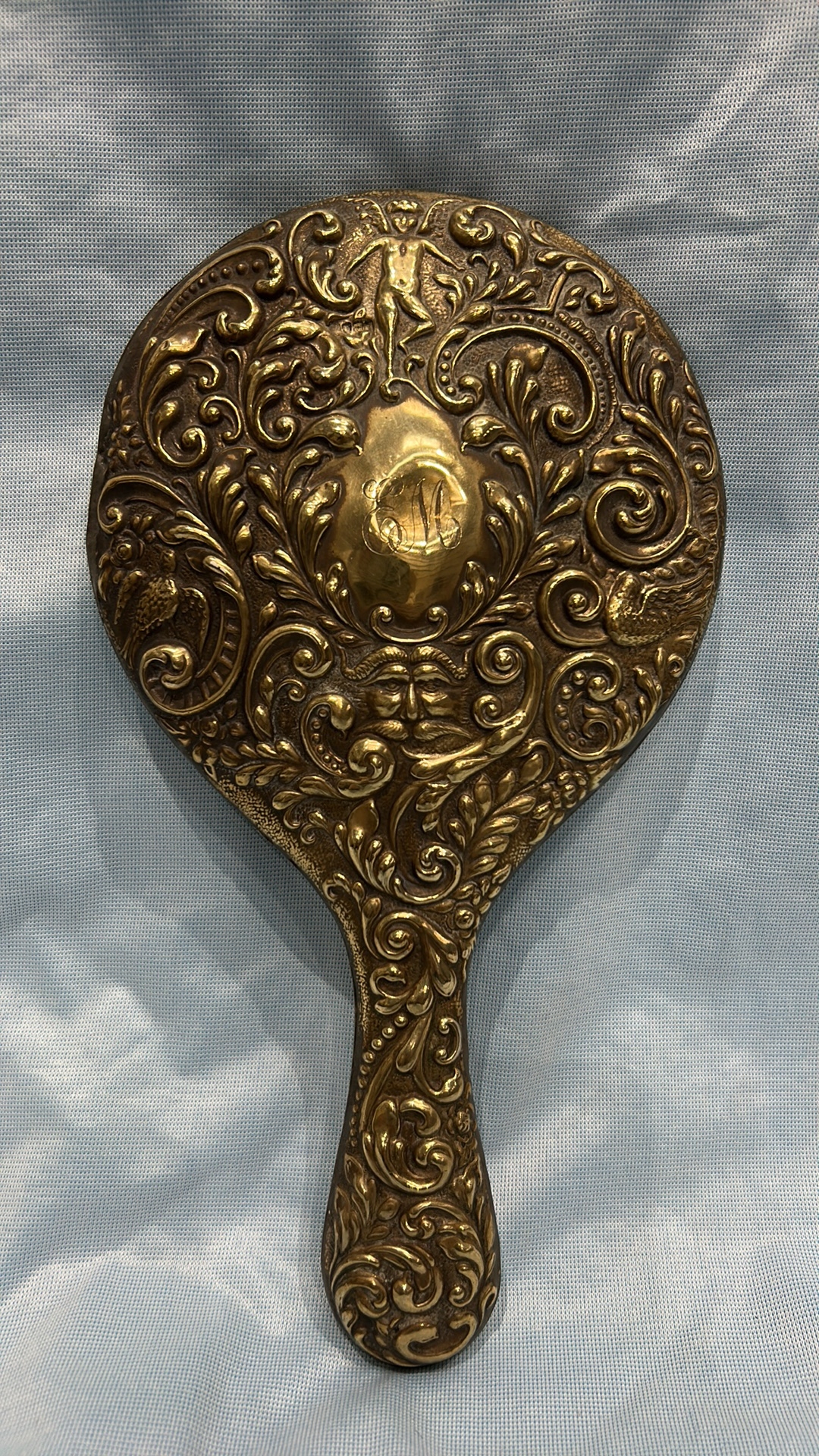 Victorian or Art Nouveau Embossed Brass Hand Mirror