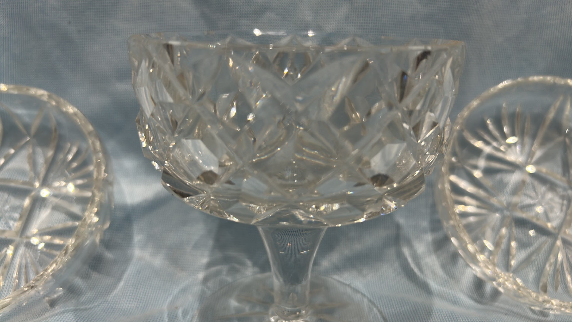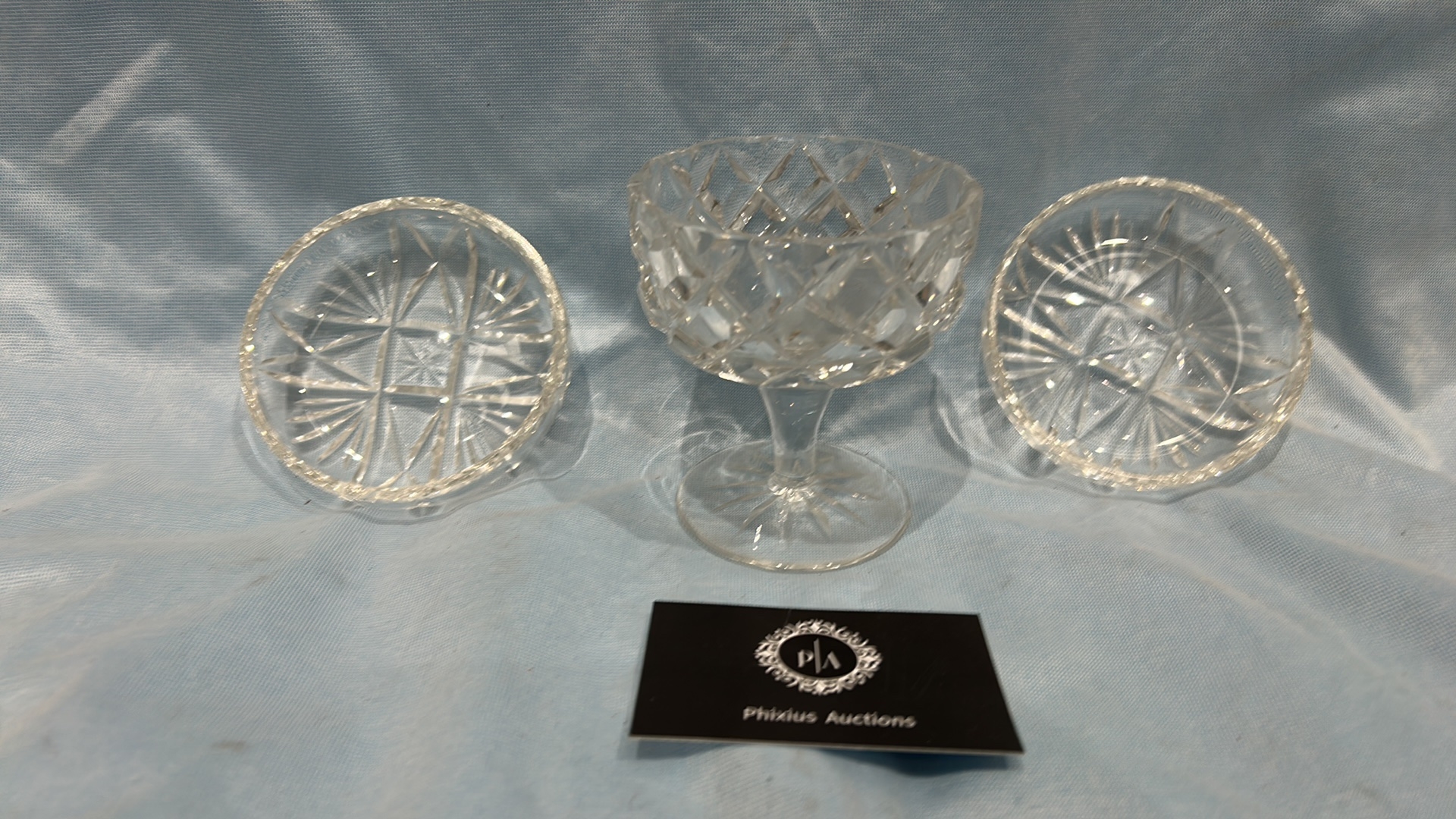 A Trio of Cut Glass Compote and Dessert Bowls, One Marked Made in Hungary