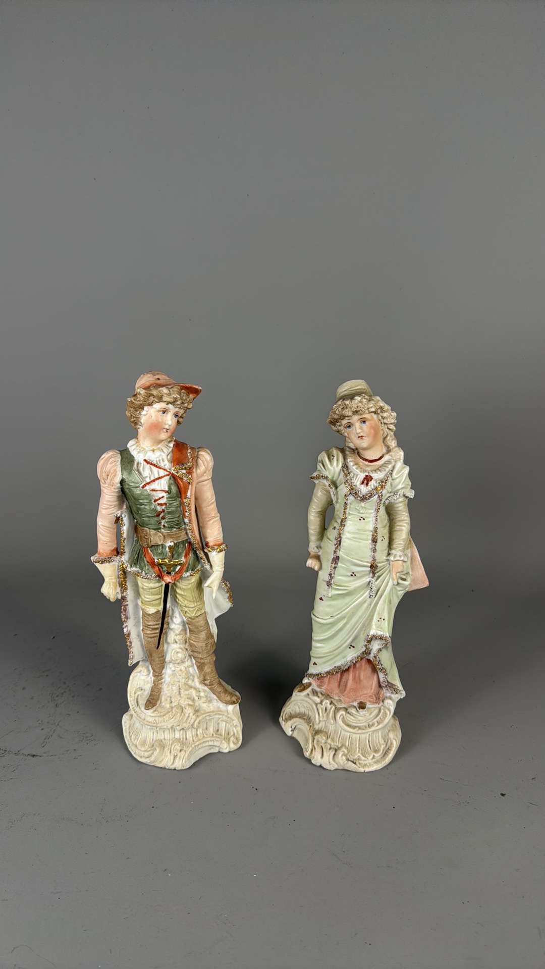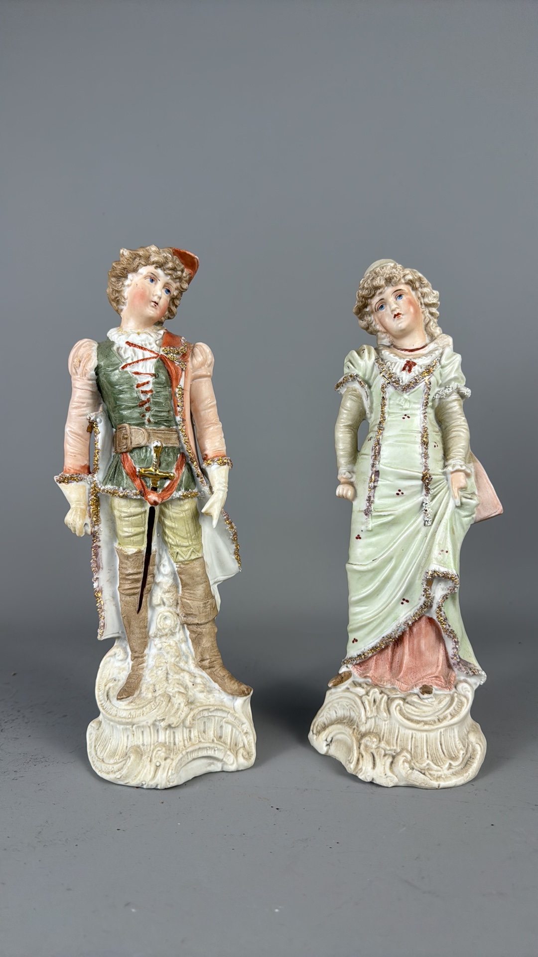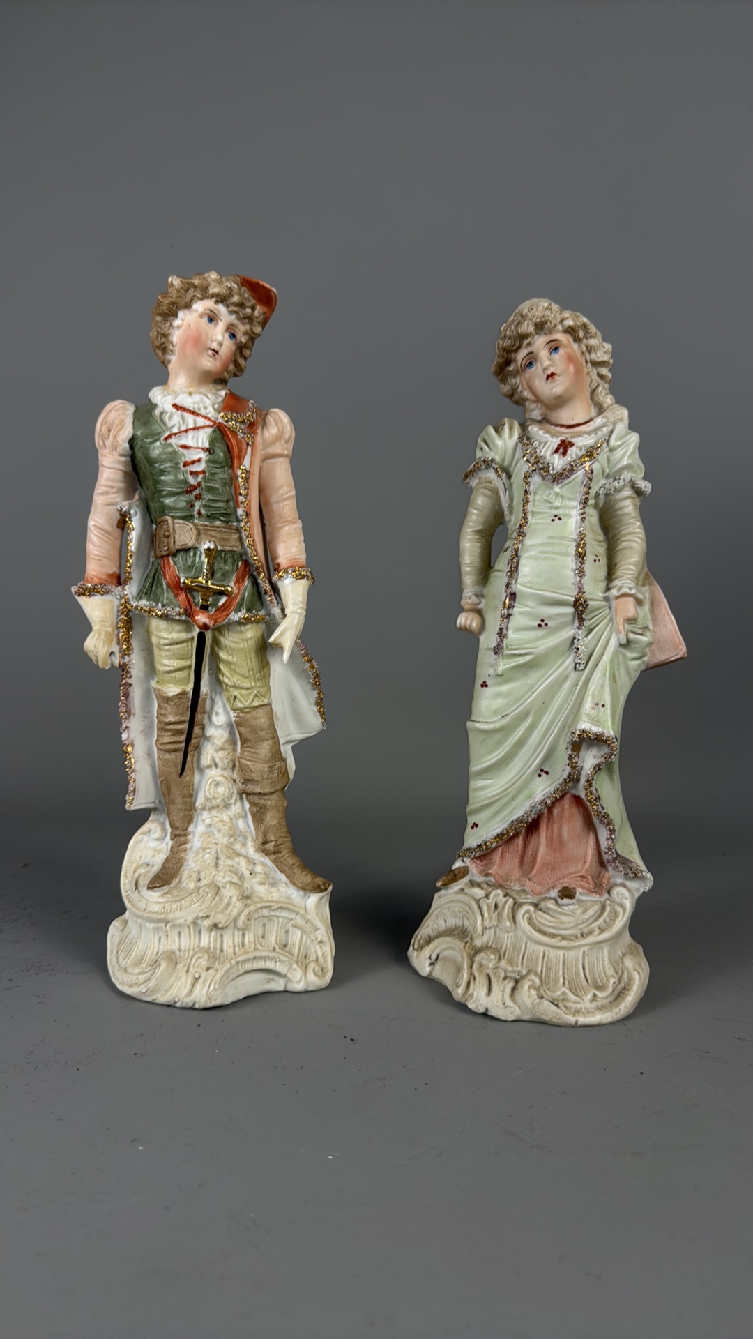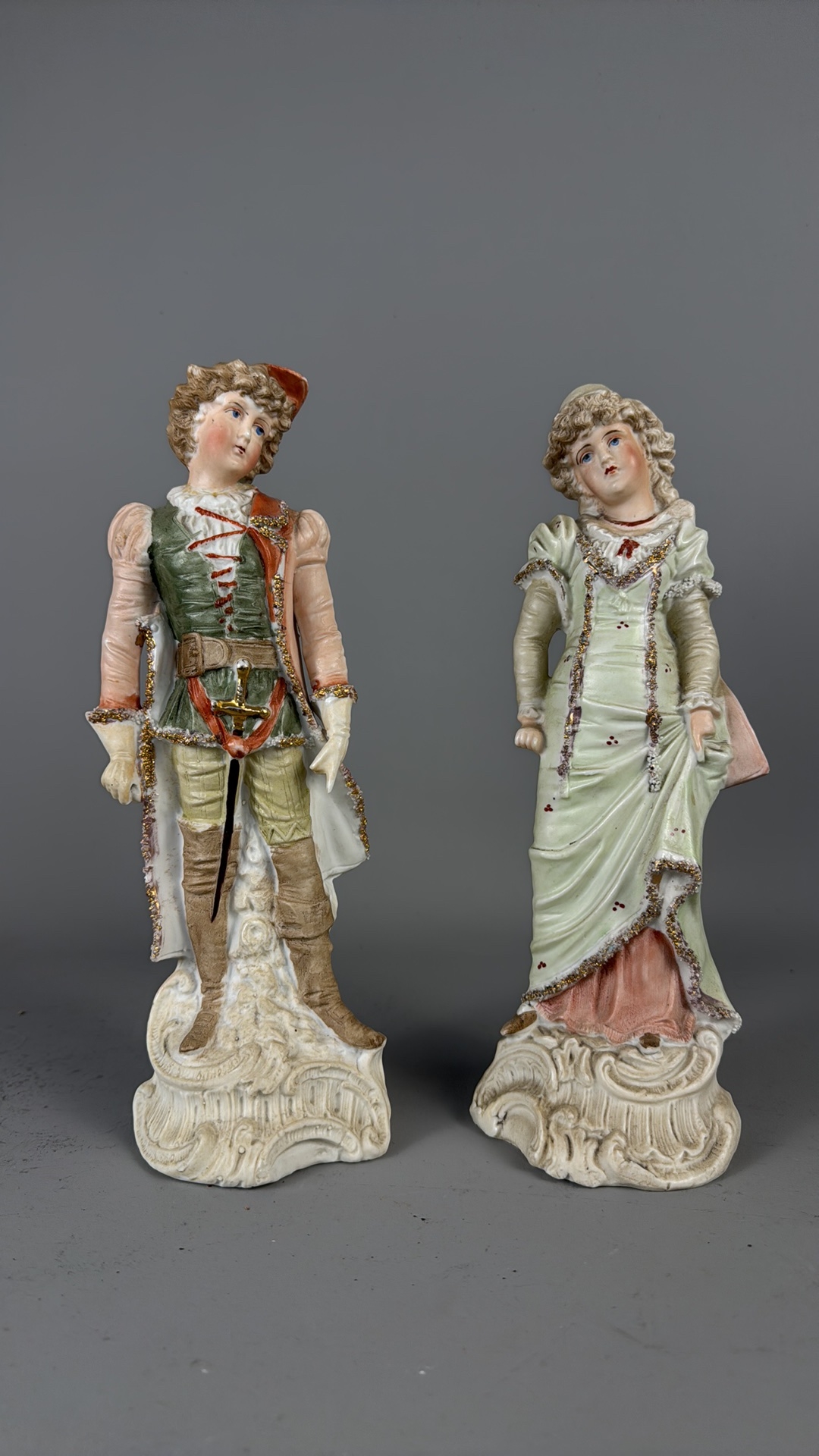 A Pair of Rococo Revival Bisque Porcelain Figural Sculptures