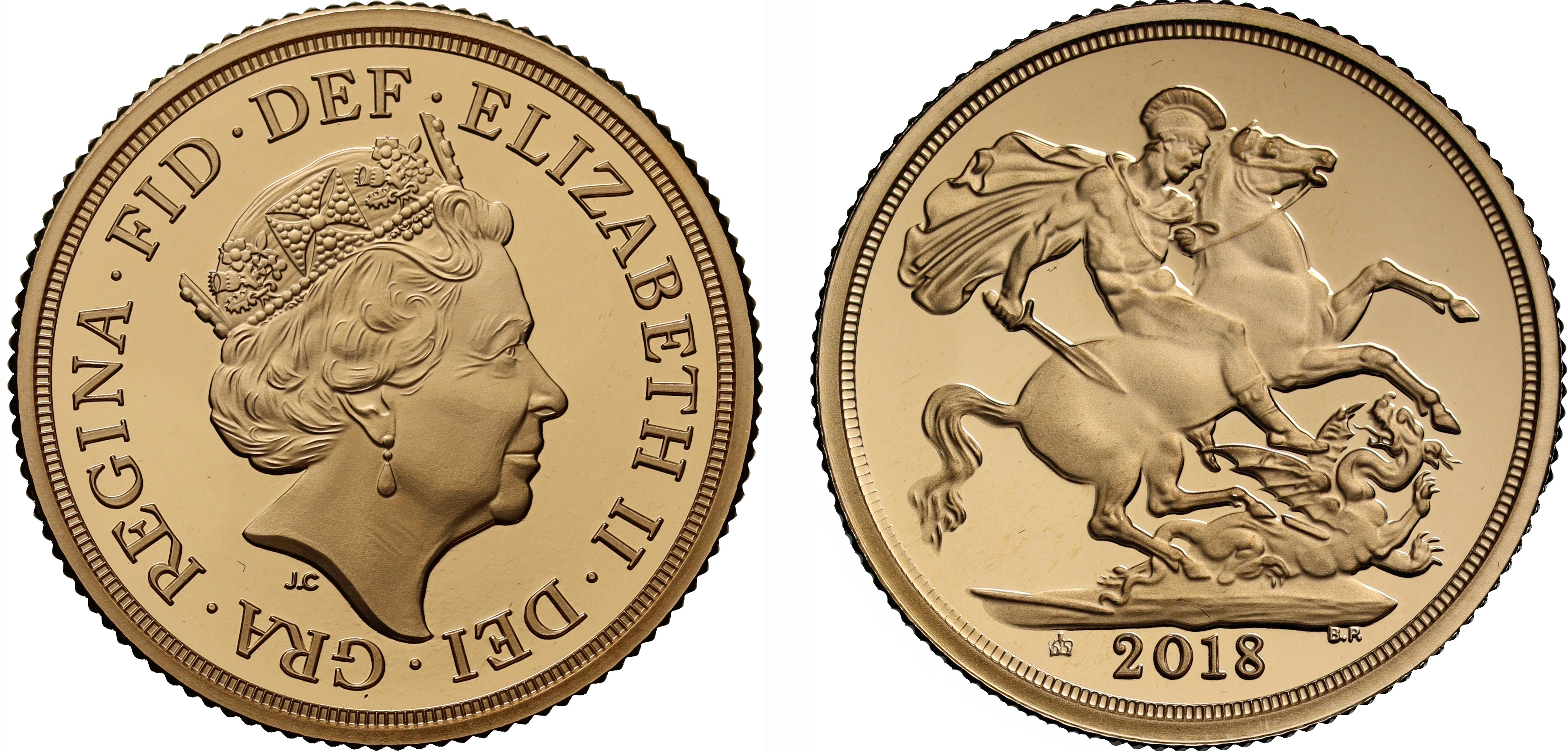 g Elizabeth II (1952-2022), gold proof piedfort Sovereign, 2018, crowned head right, JC initials below for designer Jody Clark, Latin legend and toothed border surrounding, ELIZABETH. II. DEI. GRA REGINA. FID. DEF, rev. St. George and dragon right, date in exergue, B.P. to upper right of exergue for designer Benedetto Pistrucci, 65 privy mark to upper left to commemorate the 65th Anniversary of the Queen’s Coronation, 15.96g (S.SC9D). Light residue to fields, accompanied by Royal Mint box and Certificate of Authenticity.